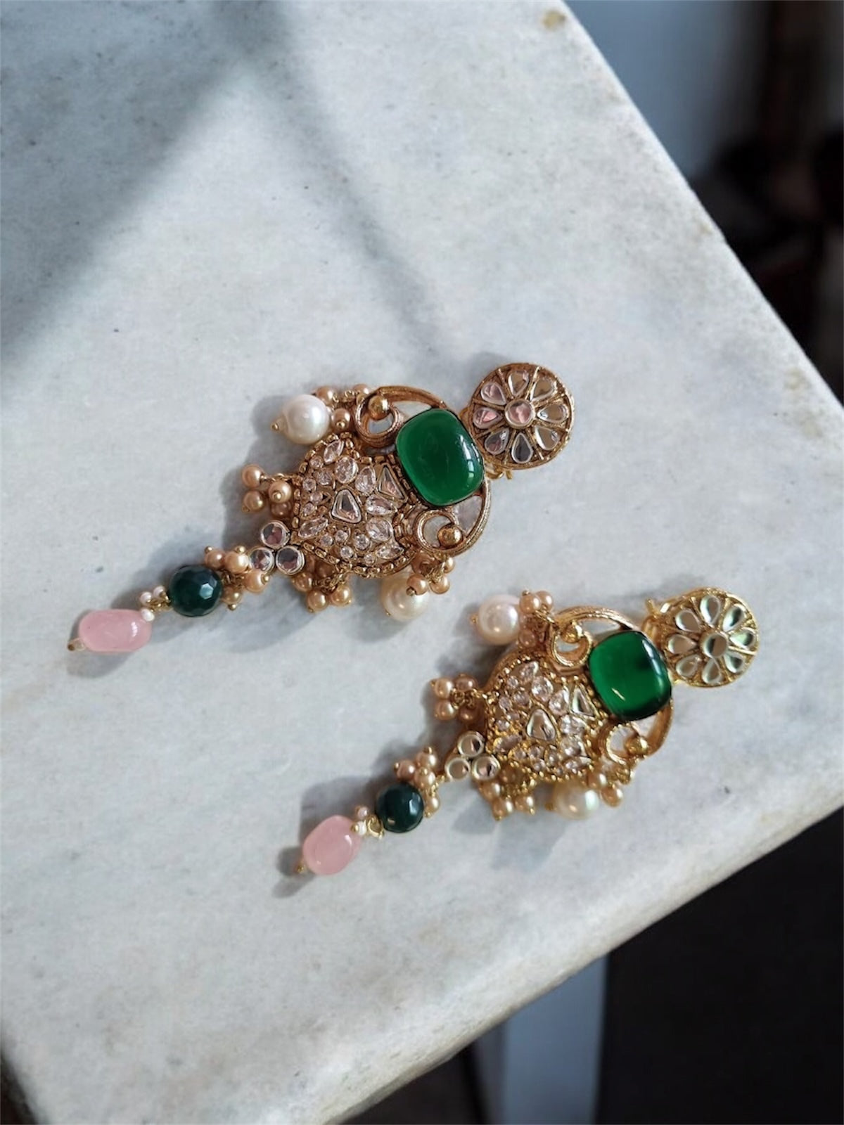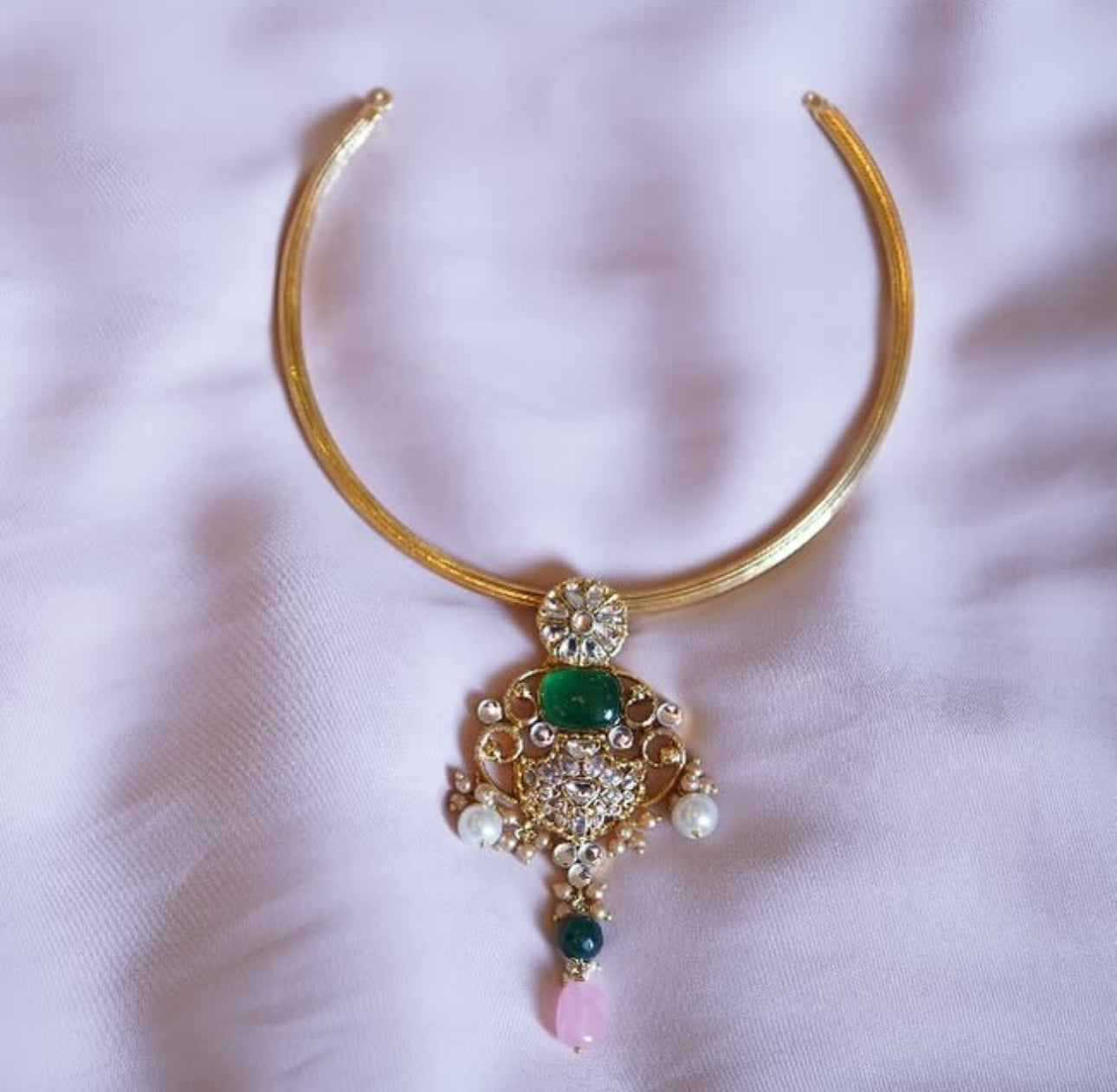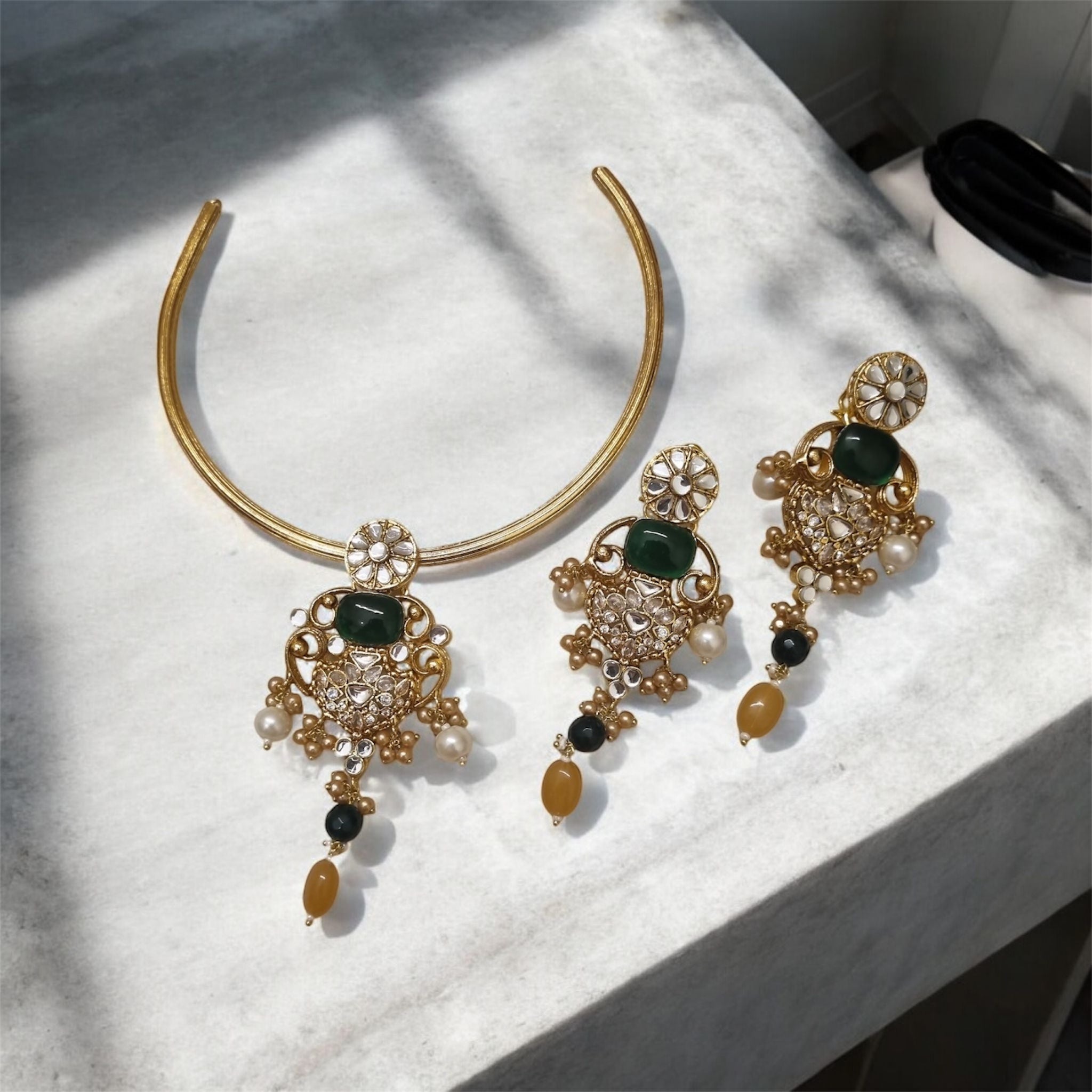 Expertly crafted and plated in 22k gold, this Hasli set is a stunning addition to any collection. Completed with matching earrings and vibrant multicolor gems, this set is versatile and perfect for any occasion. Elevate your style with this elegant and timeless piece.