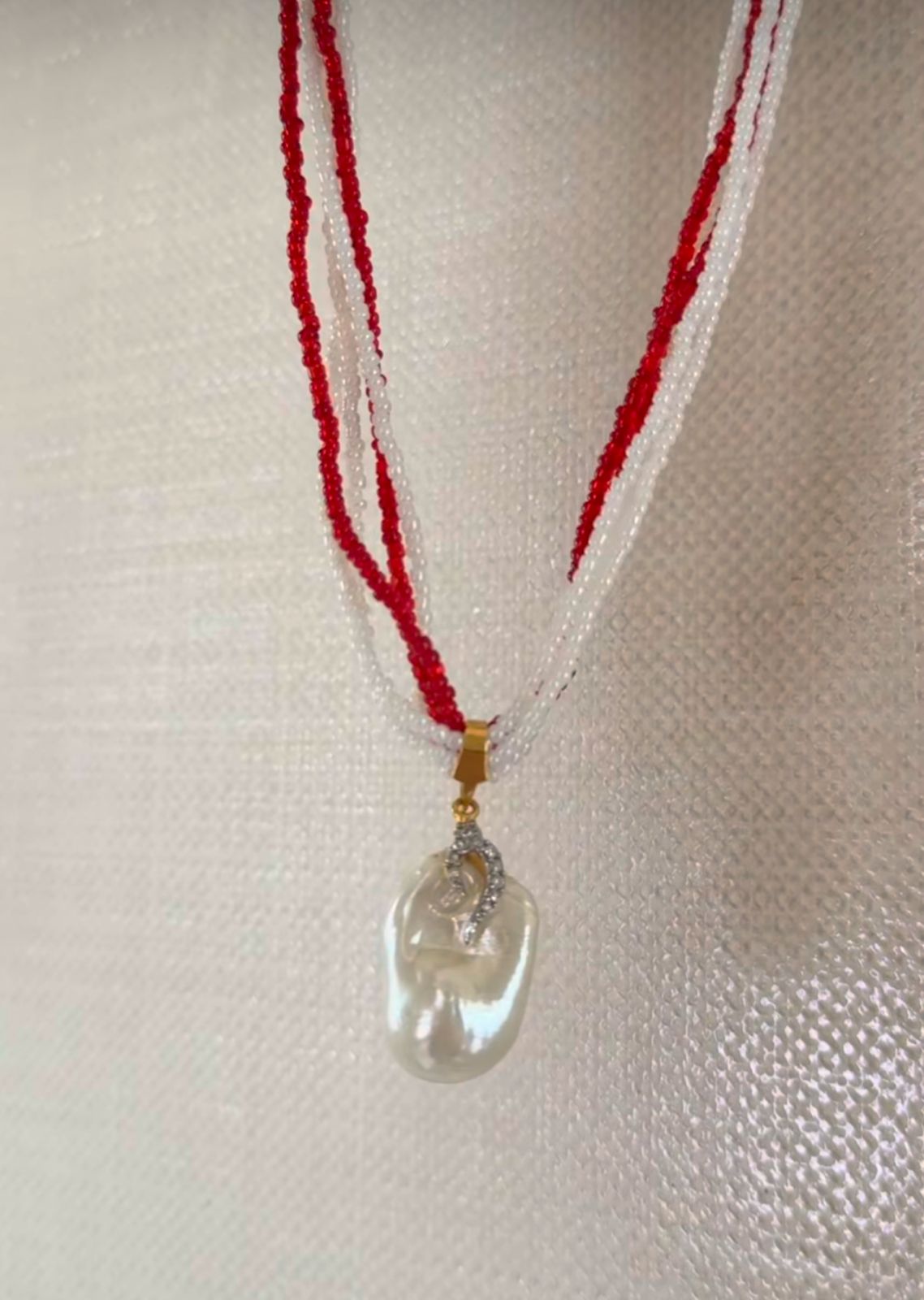 Baroque pearl with ruby and pearl strings