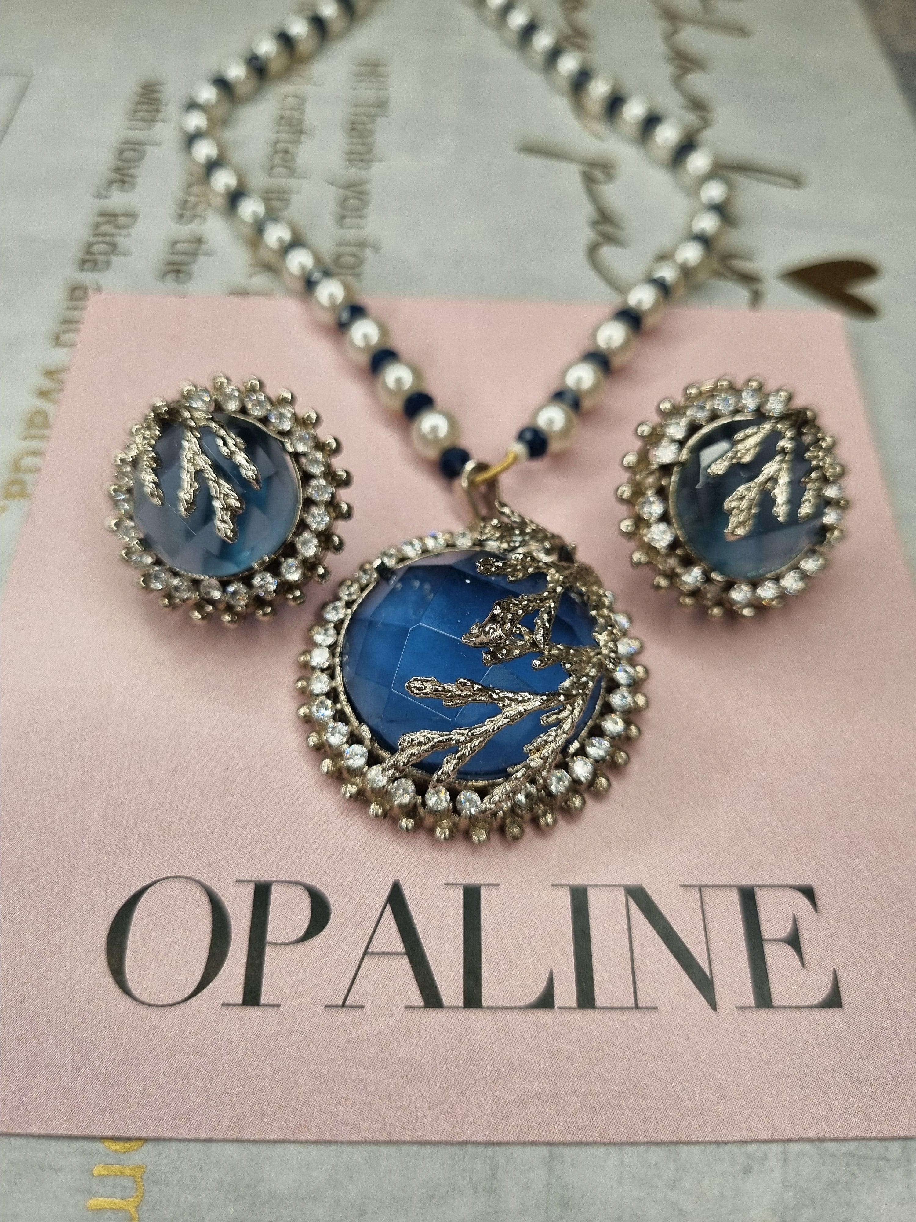 Expertly crafted for timeless elegance, our Beaded Treasure set of 4 includes stunning blue crystal rings, earrings, and necklace, all plated in radiant rhodium. Perfect for any occasion, these classic accessories shine with sophistication and add a touch of sparkle to any outfit.