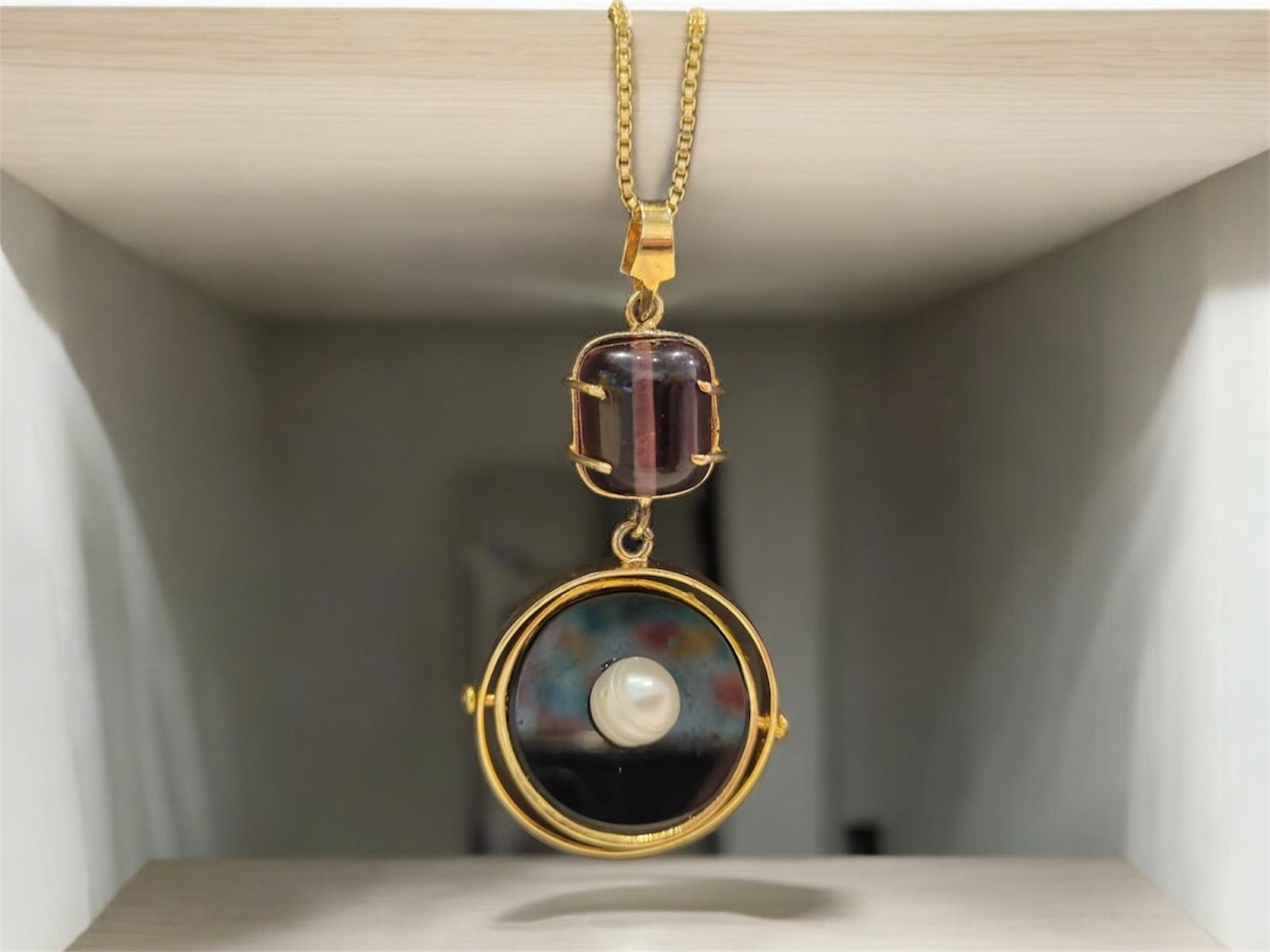 Experience the versatility with our Reversible Necklace. This 2-way necklace offers two stunning options, featuring a sleek onyx and a beautiful mother of pearl with aqeeq. Effortlessly switch up your look to match any outfit or occasion. Transform your style with our reversible design.