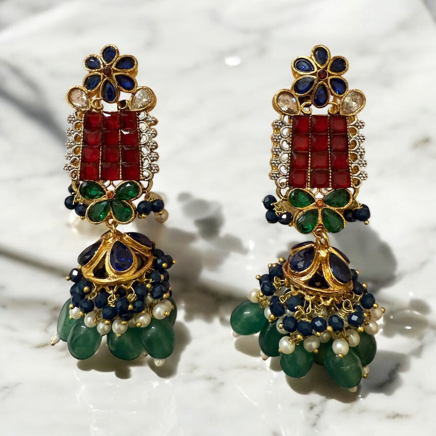 Experience the beauty of nature with our Jungle Mala. Hand-crafted with sapphires, rubies, emeralds, and golden balls, this mala connects you to the earth's energy. Complete your look with the included earrings. Perfect for nature lovers and spiritual seekers.