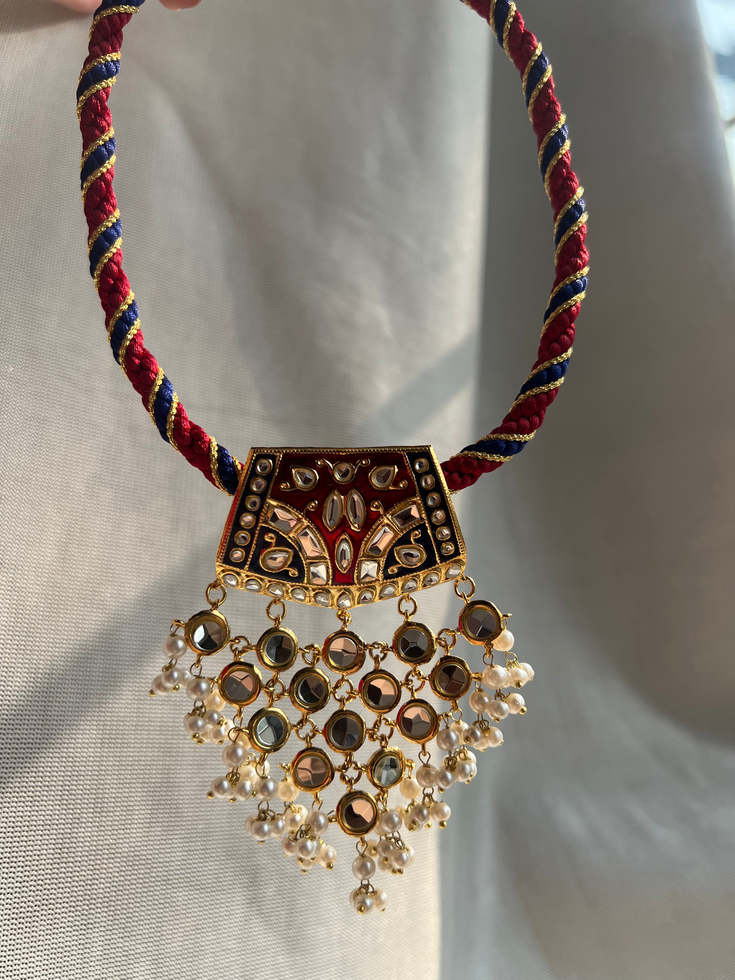 Experience the classic elegance of OldGold. Our 22k plated meenakari motif paired with lustrous pearls adds a touch of sophistication to any outfit. The earrings and necklace set exudes timeless beauty and is perfect for any occasion. Elevate your style with OldGold.