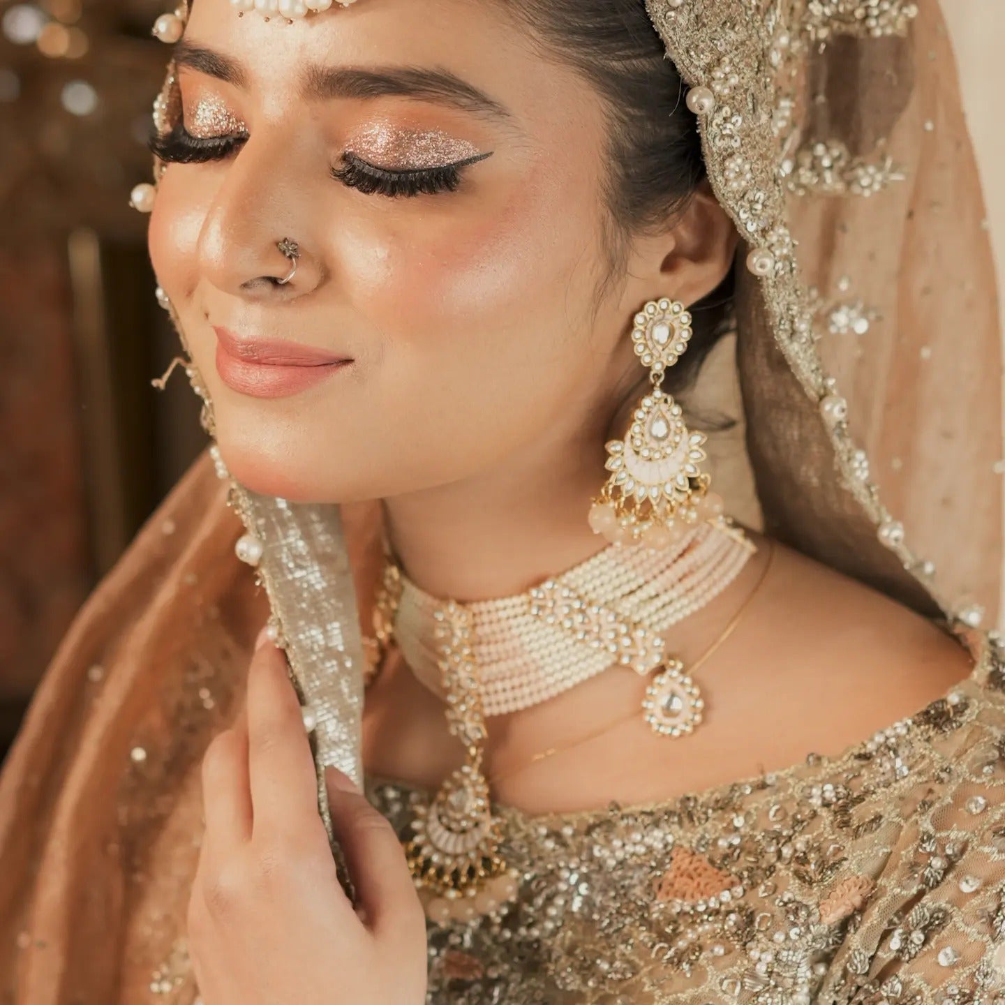 Expertly crafted with kundan, peach pearls, and golden and silver hues, Peachy Love earrings and necklace exude elegance and sophistication. Perfectly complement any outfit with these stunning accessories. Elevate your style and radiate confidence with Peachy Love.