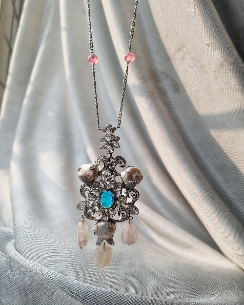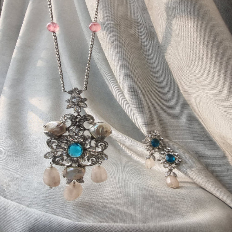 Adorn yourself with the luxurious charm of this sapphire and coin pearl set, exquisitely paired with Belgium zircons and barrel-set accents. The mala showcases a harmonious blend of lustrous pearls, vibrant sapphires, and sparkling zircons, creating an aura of timeless elegance. Complemented by intricately designed earrings, this set is the epitome of sophistication, perfect for weddings, formal events, or adding a royal touch to any occasion.