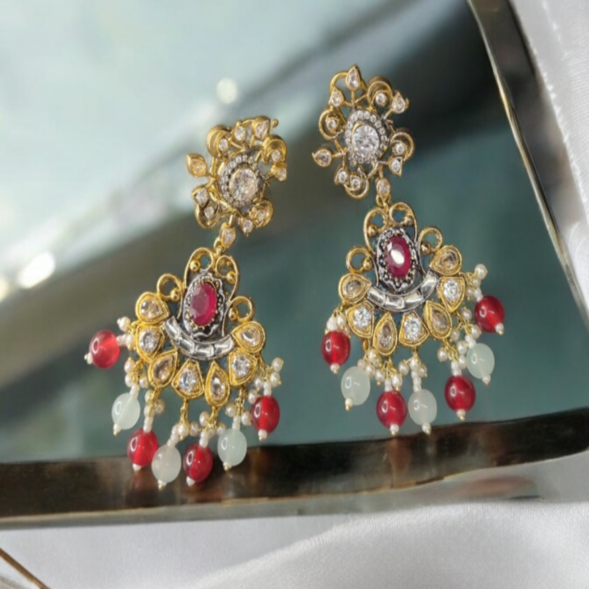 Embrace timeless elegance with our Royal Ruby Earrings, featuring rich ruby stones set in a 22K gold-polished finish. Adorned with sparkling Belgium zircons, these earrings blend classic charm with regal sophistication. Perfect for festive occasions and traditional attire, they add a radiant touch to your jewelry collection.