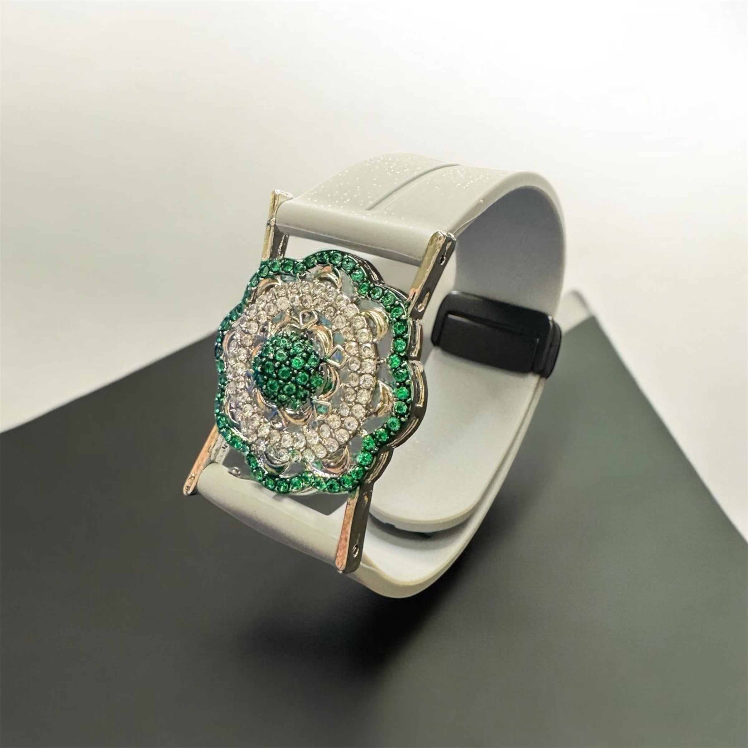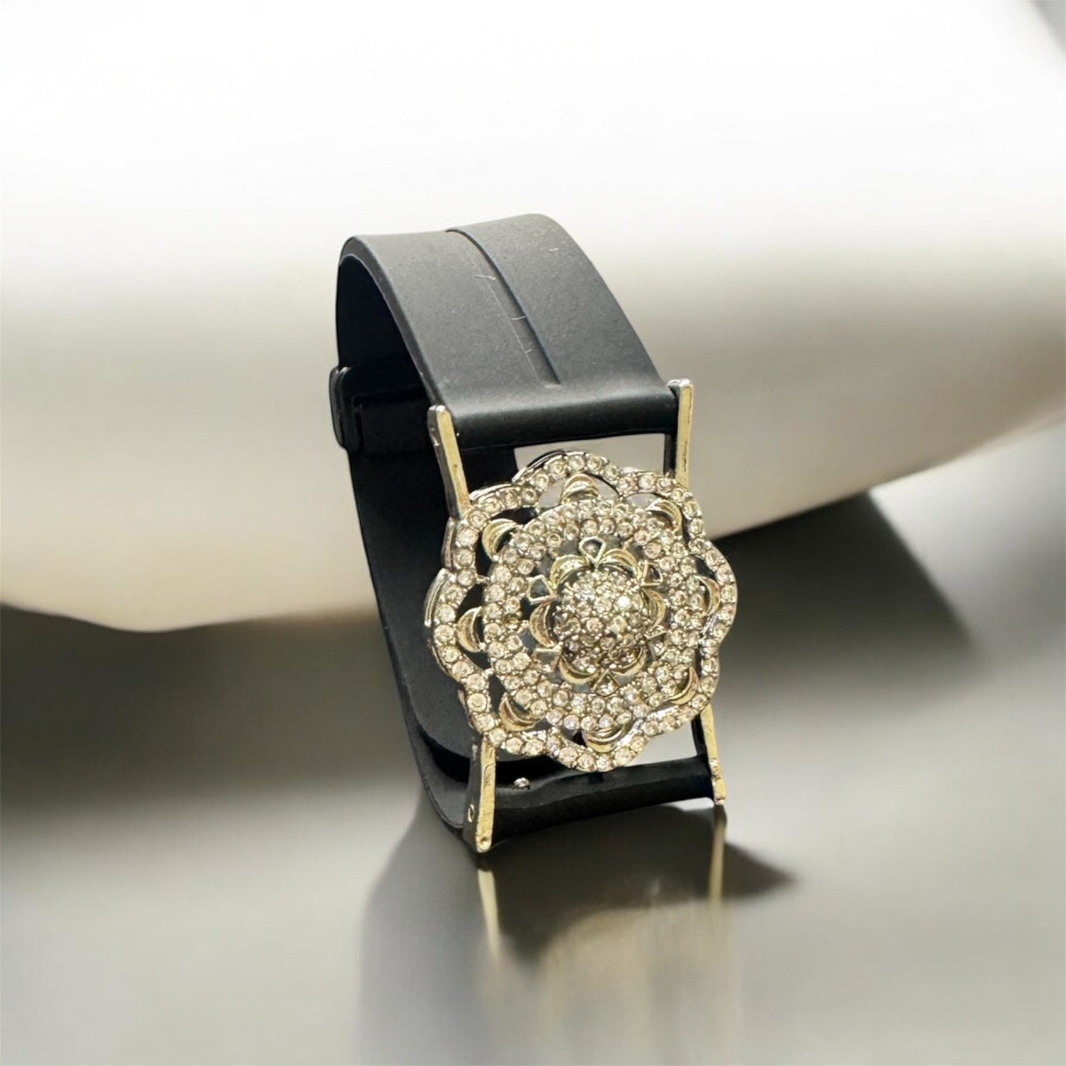 Upgrade your style with the Silicon Band. Made of silicon, this band sports a 22k plated gorgeous motif for added elegance. Durable and chic, it's a must-have for any fashion-forward individual. Elevate your look with this stylish accessory.